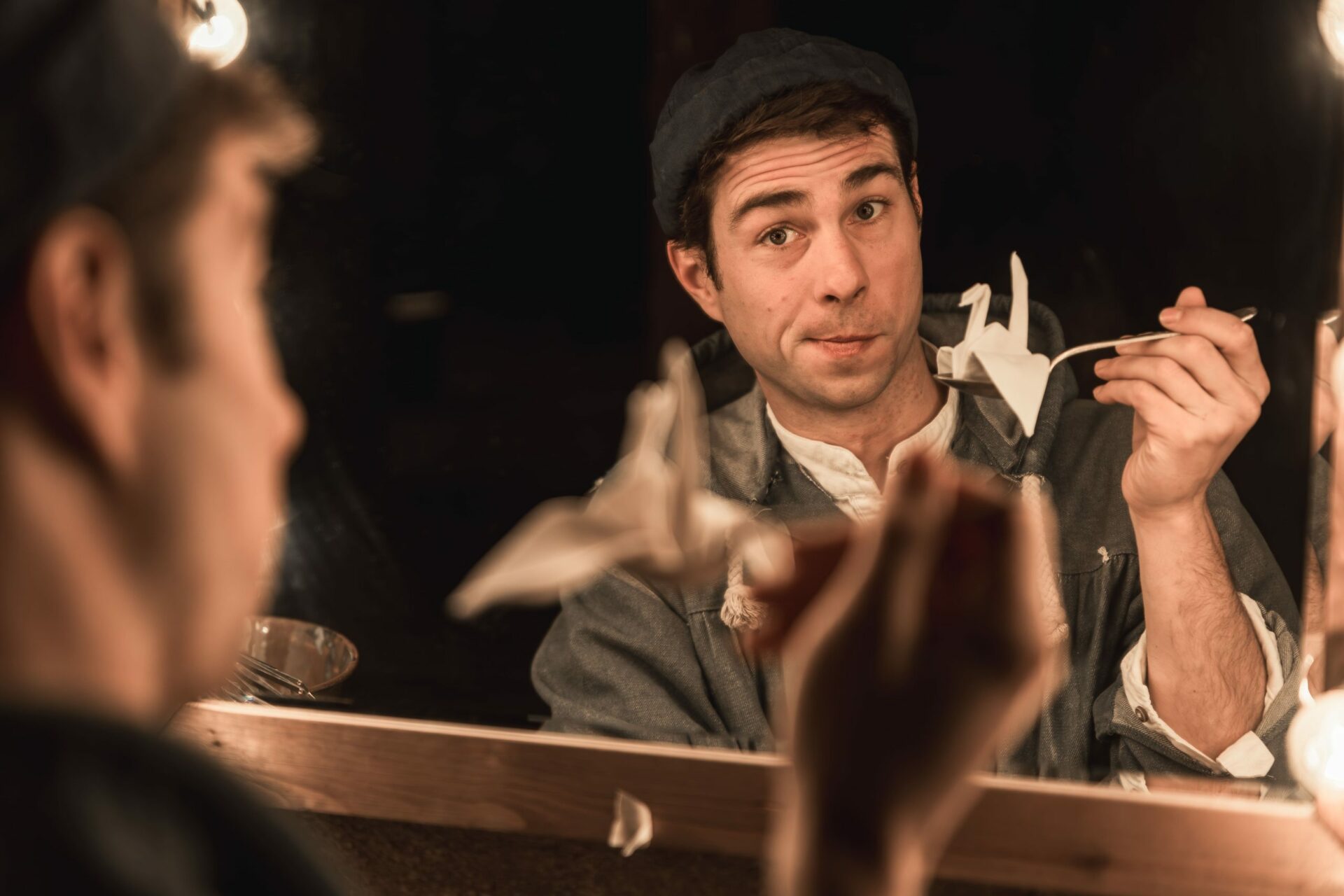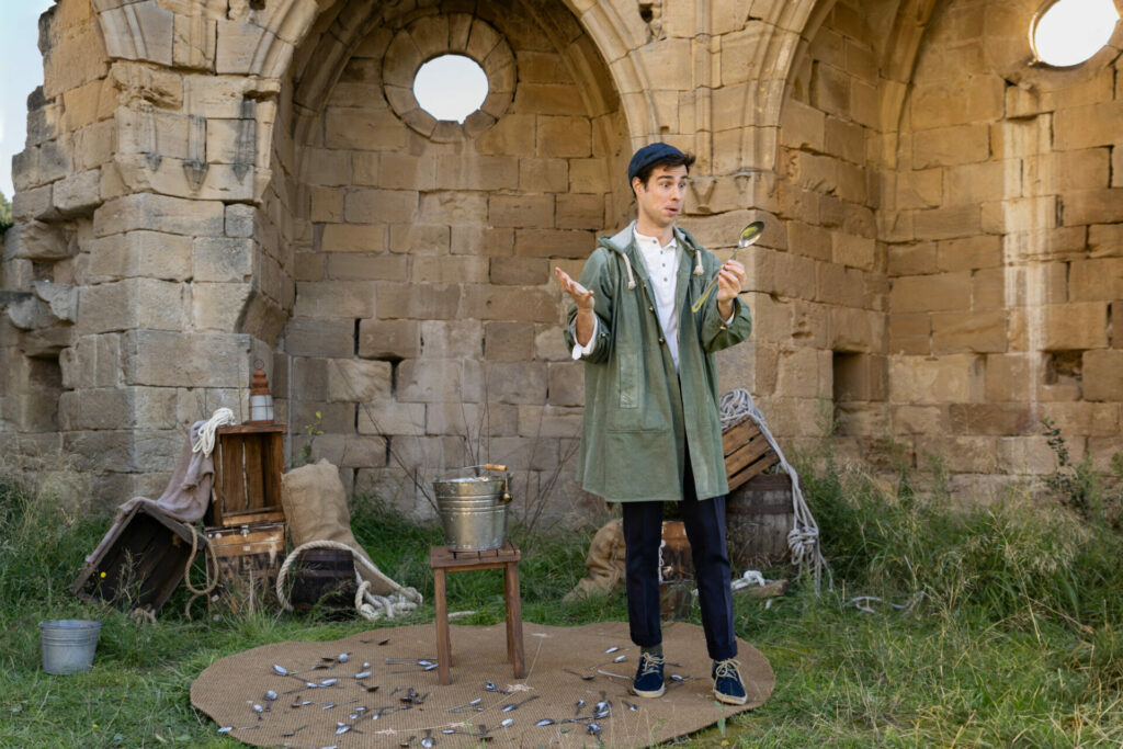 Unes gotes imaginaries es converteixen en ritmes constants de sorpresa, revelant una coreografia d’imaginació i fantasia que porta aquesta creativitat a jugar amb l’absurd. Una tassa que apareix, un fluir de monedes inquietes i culleres que no deixen de sorgir a borbolls de les butxaques.